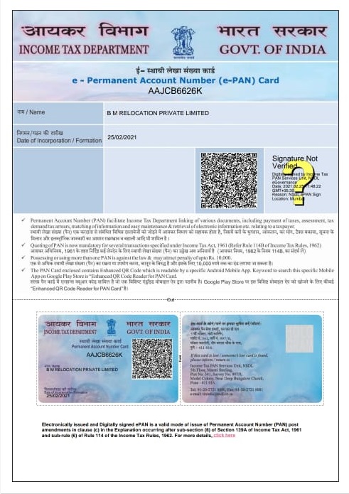 B M Relocation Private Limited is listed as a Micro enterprise under MSME.